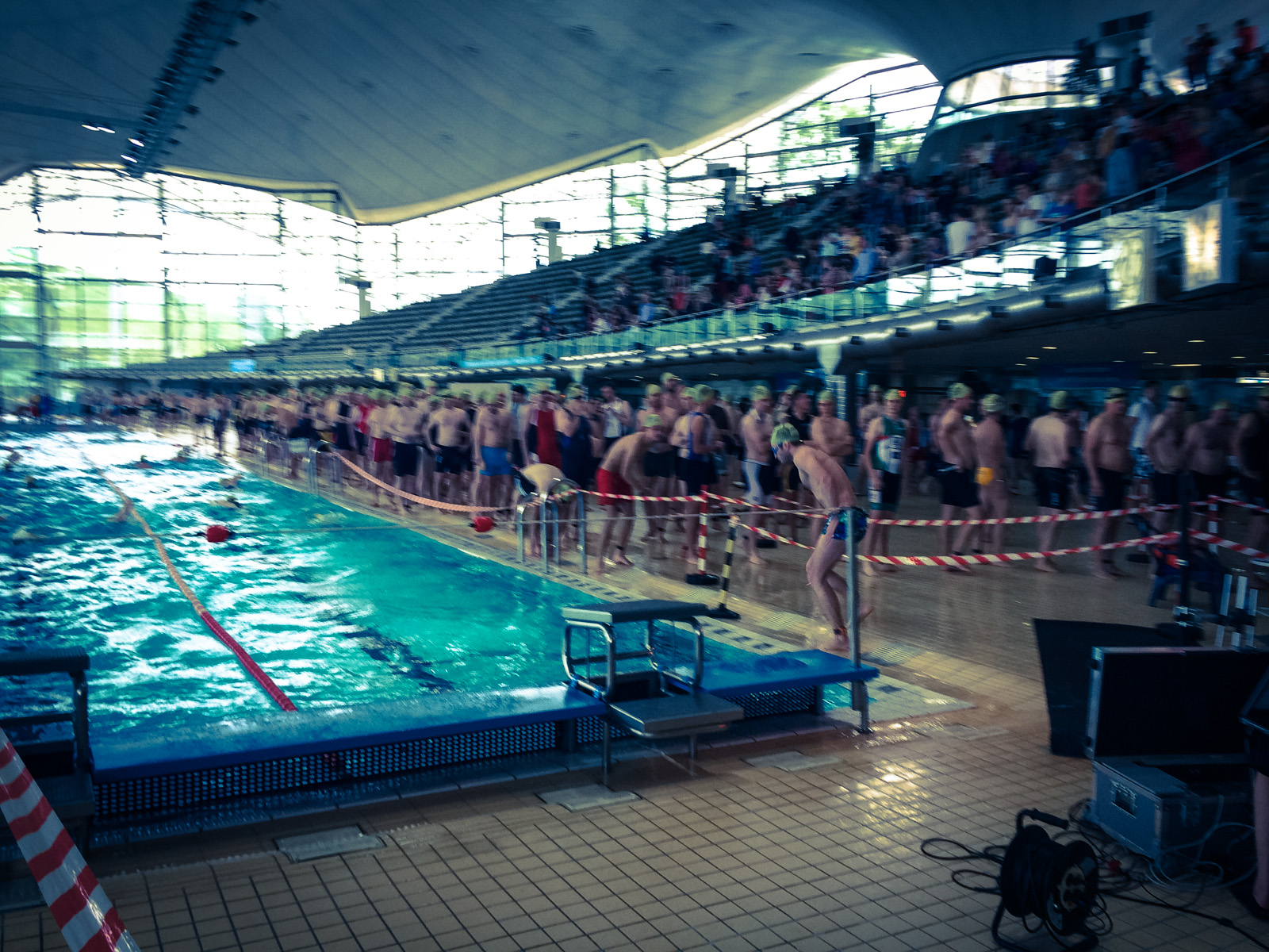 Then I was standing there, second in line to jump into the water [funnily my registered swimming time was second slowest of the fast group] and then they guy infront of me jumped into the pool … so only 12 seconds left till my start … count down … 3 … 2 … 1 … GO