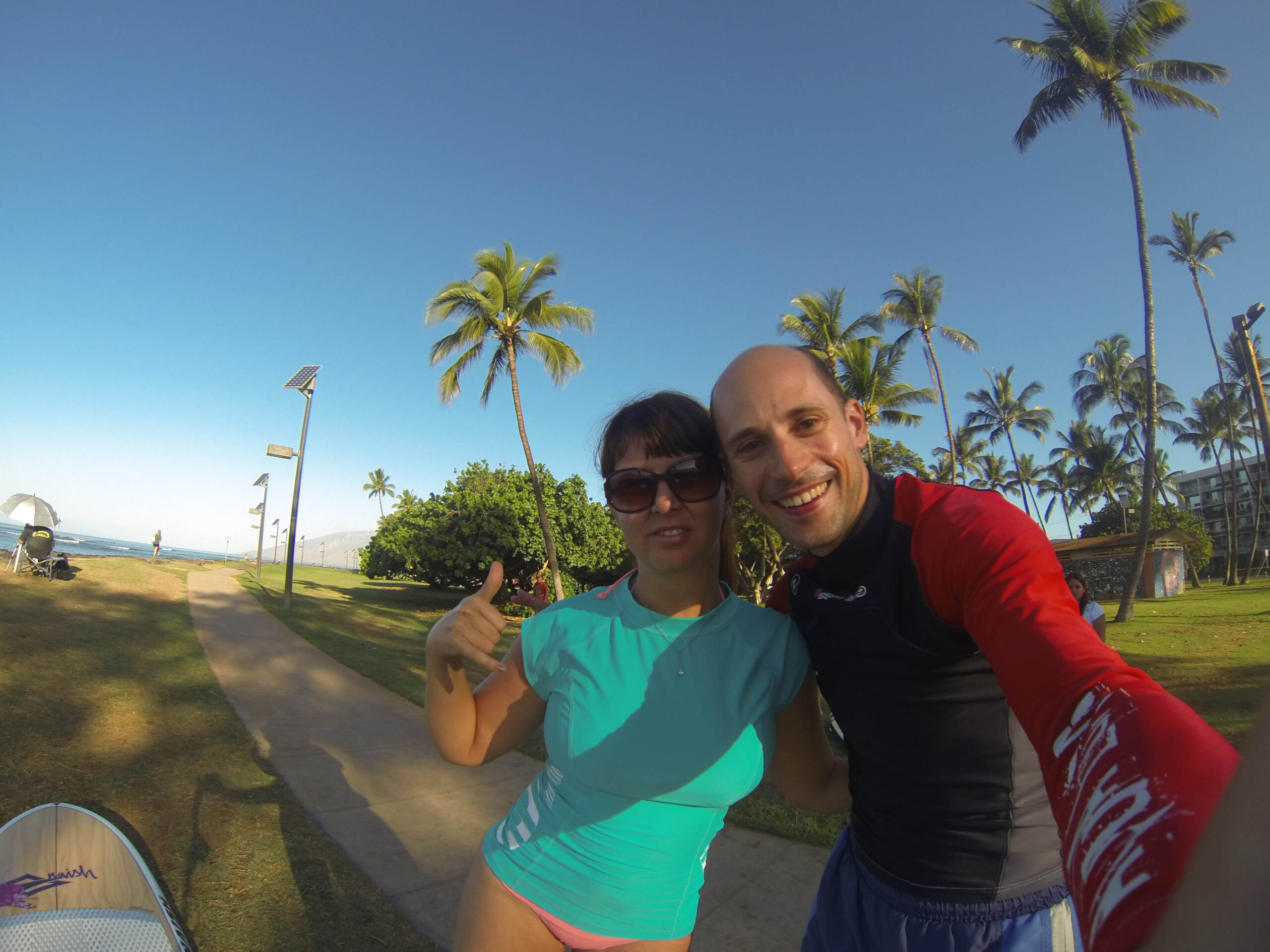 Stand Up Paddling or short SUP is a very famous sport in Hawaii and my couchsurfing friend Jen introduced me to this sport on a Saturday morning in Kihei, Maui. The board was 25$ for 2 hours with a brief introduction how to do SUP. Basically you are standing on a big surf board and you have a paddle to navigate yourself around. Here some impressions from a sport which is very good for your balance and body and just great to be on the water and enjoy the scenery. We even got to see a baby whale nearby.