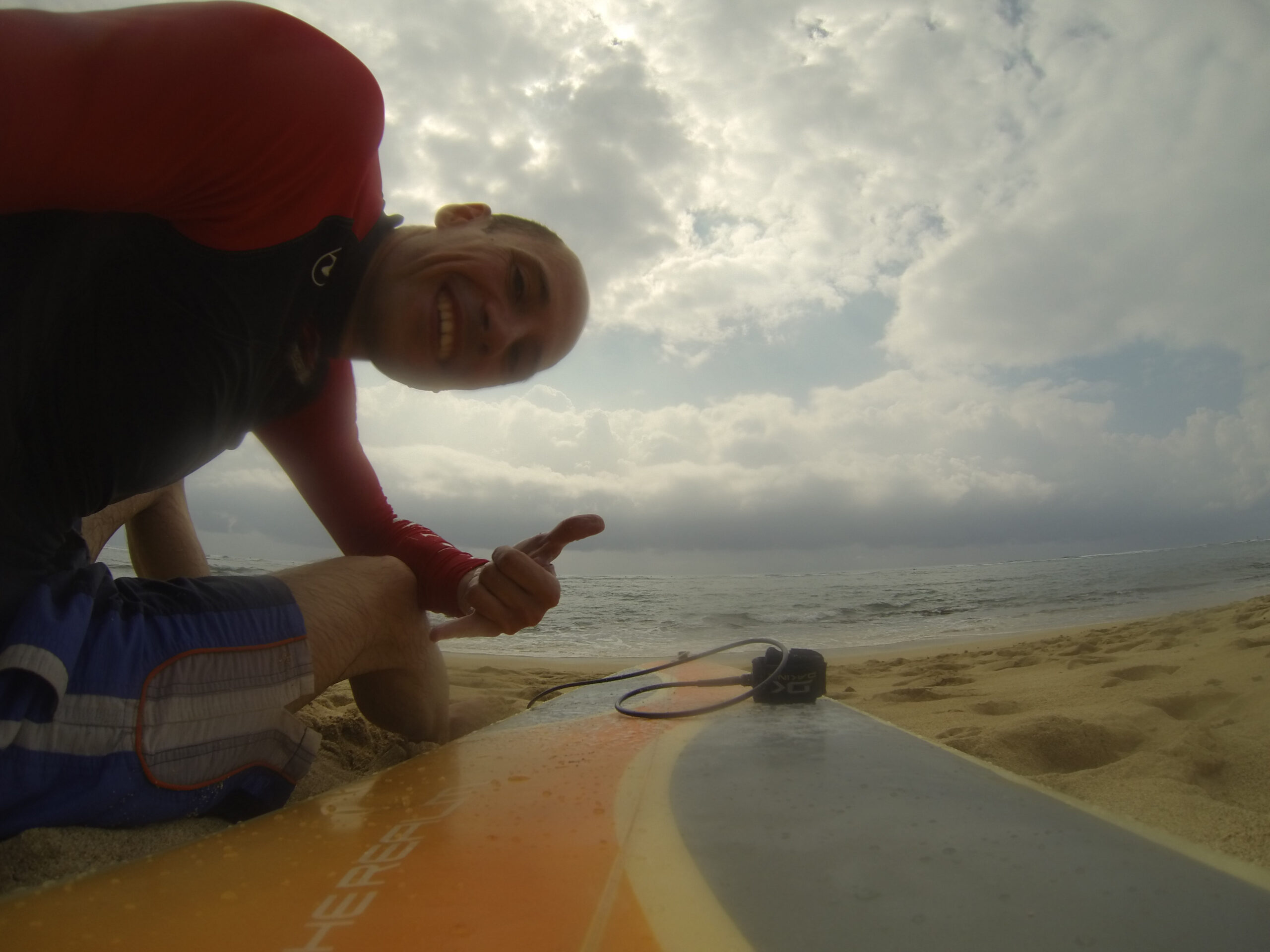 After surfing in Finland, Hong Kong, Taiwan and Australia, I got the chance to surf with Ambrose, a surf guru here in Kaua’i, Hawaii. And what a great surf lesson. After arranging the surf lesson the day before we met at 7am at the beach to check out the weather and he was already starting the surf lesson there, explaining me the weather conditions and a lot of other great life lessons.